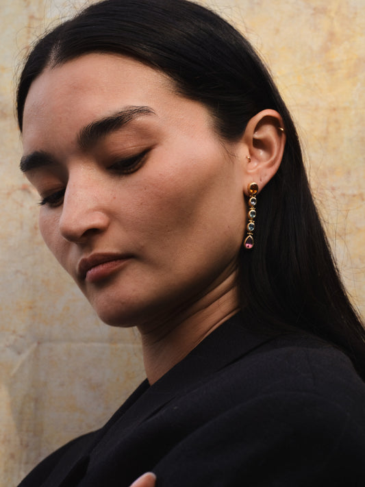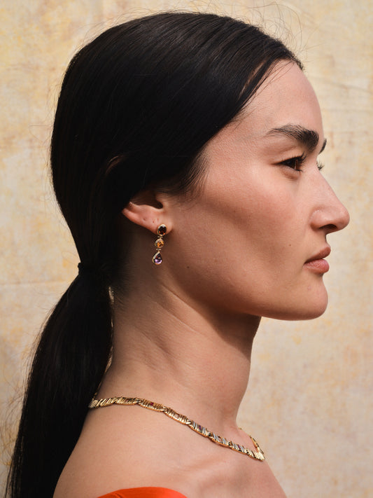 SARARA DROP EARRINGS - IMPERIAL MALAYA GARNET , MANDARIN GARNET, VIOLET SPINEL