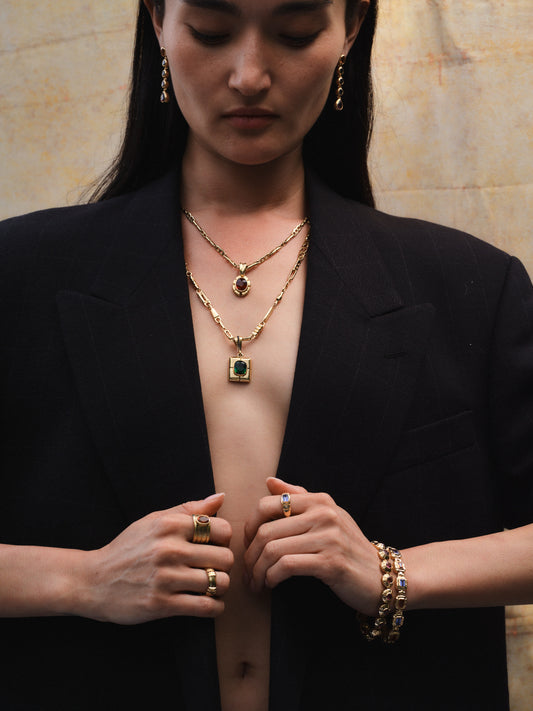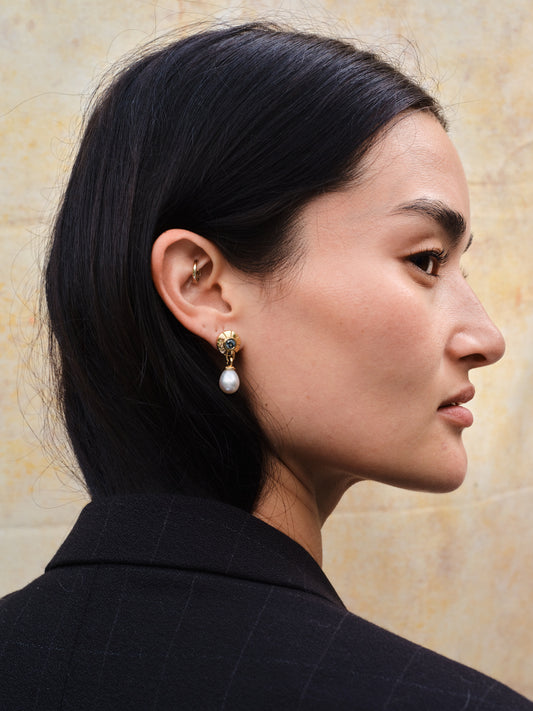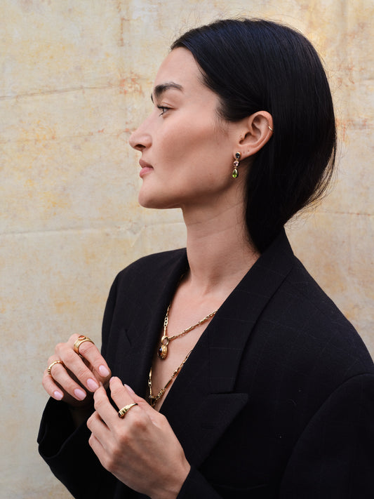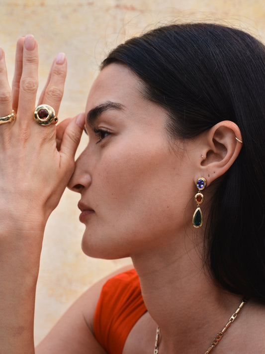 SARARA DROP EARRING - UNHEATED TEAL SAPPHIRE, MALAYA GARNET, PERIDOT
