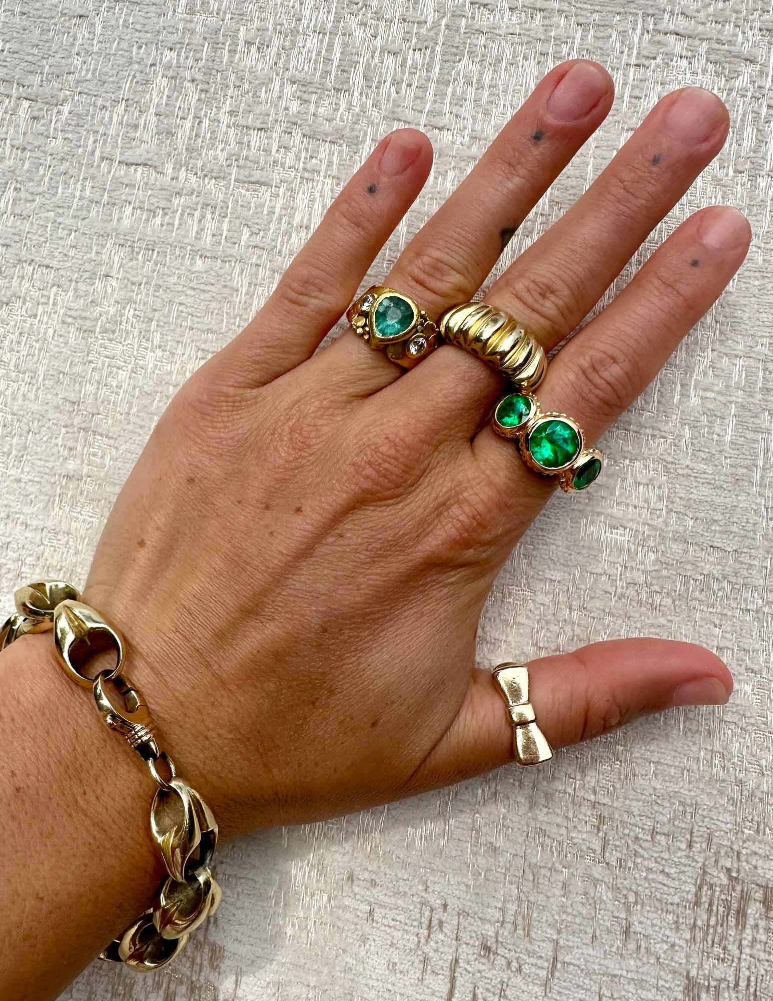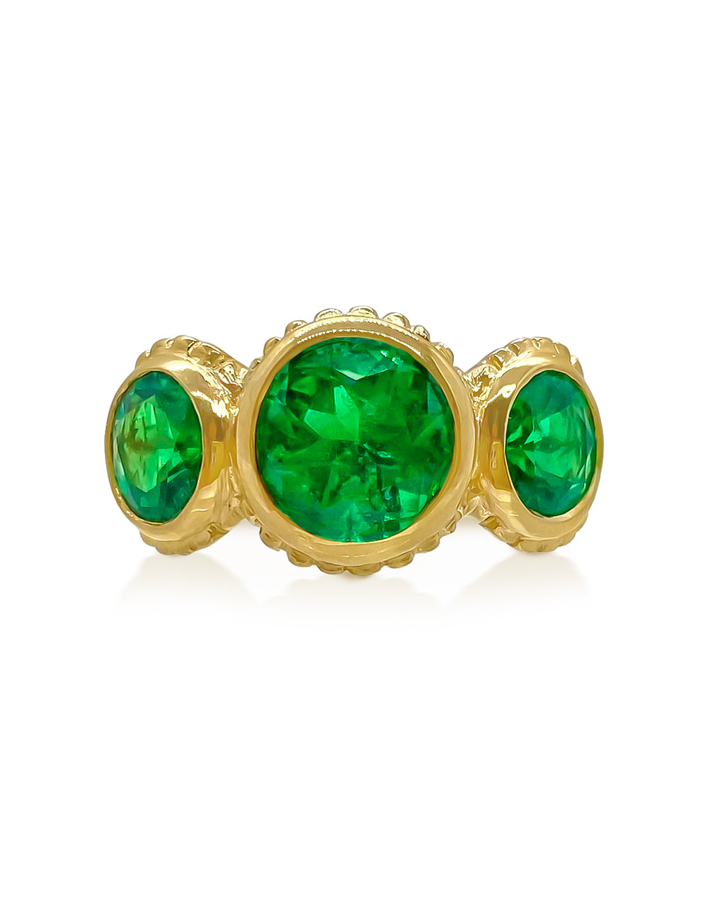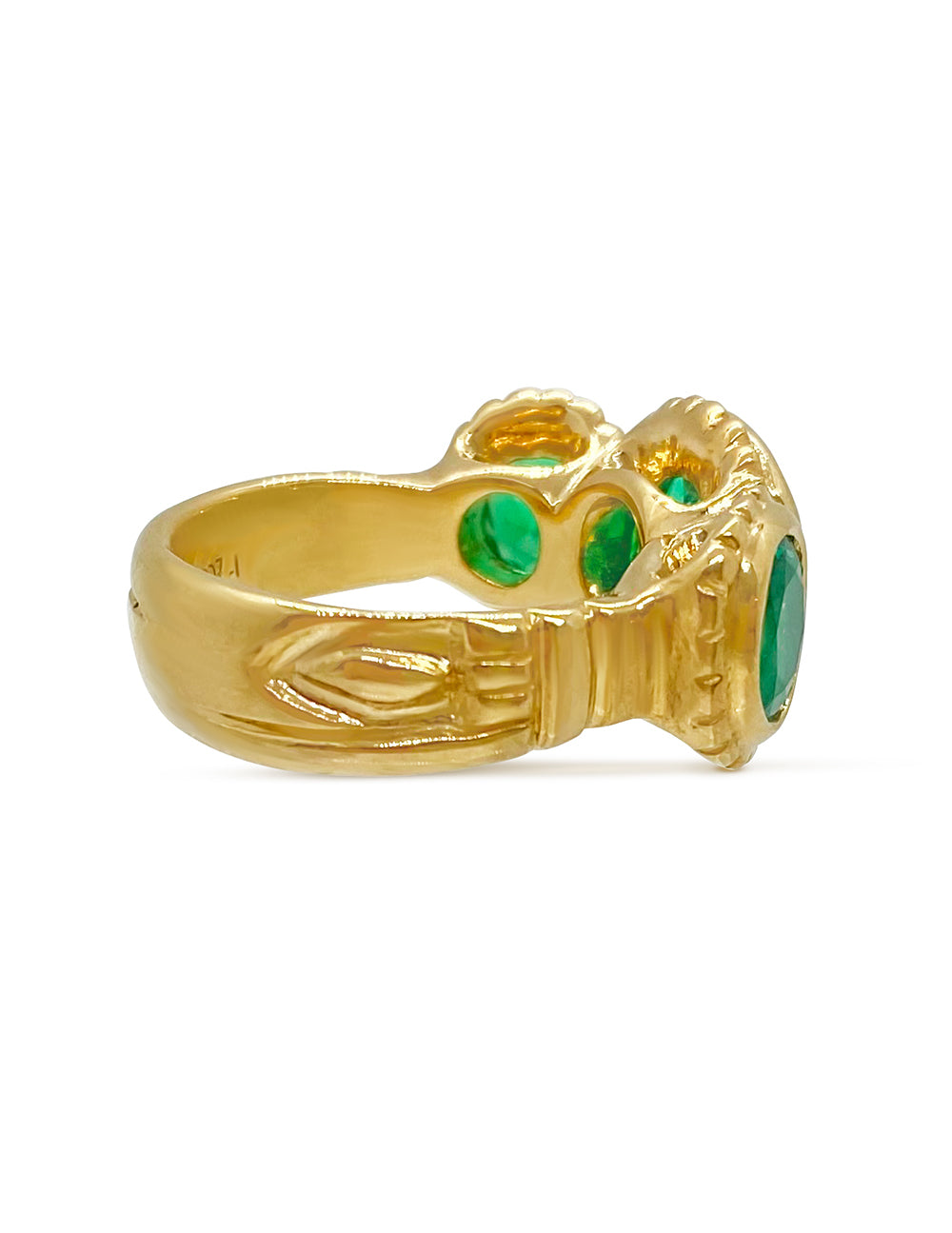 hand-carved ring with 4.5cts Colombian emeralds bezel set