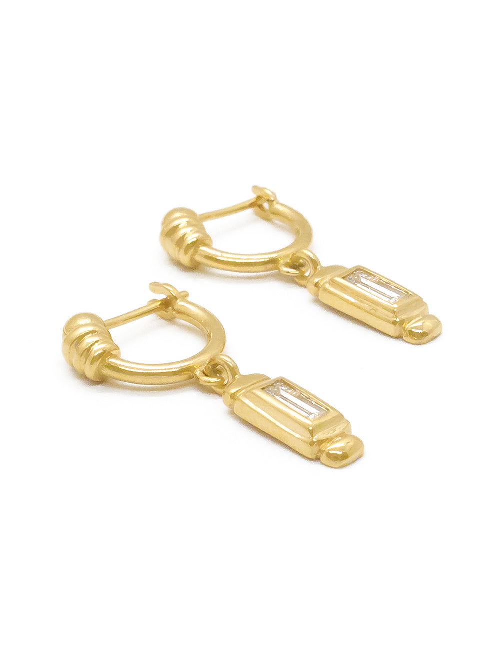 The Baguette Diamond Drop Earrings feature two, bright Diamonds. Every detail was casted and crafted in Los Angeles.