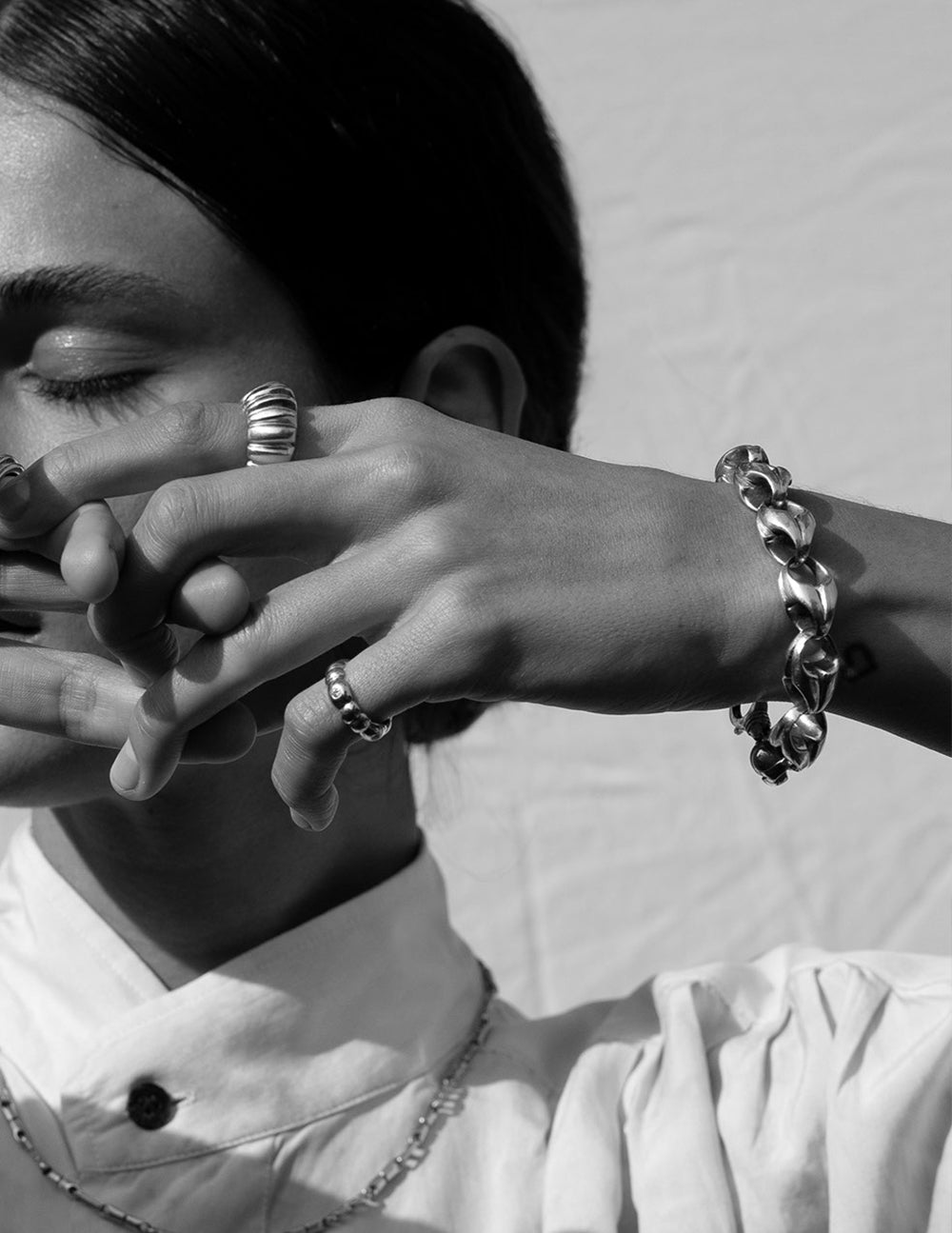 The Lotus Bracelet is unique in design. Its chunky, bold links resemble the bud of a lotus flower symbolizing strength, resilience, and rebirth. Every detail was created in Los Angeles.