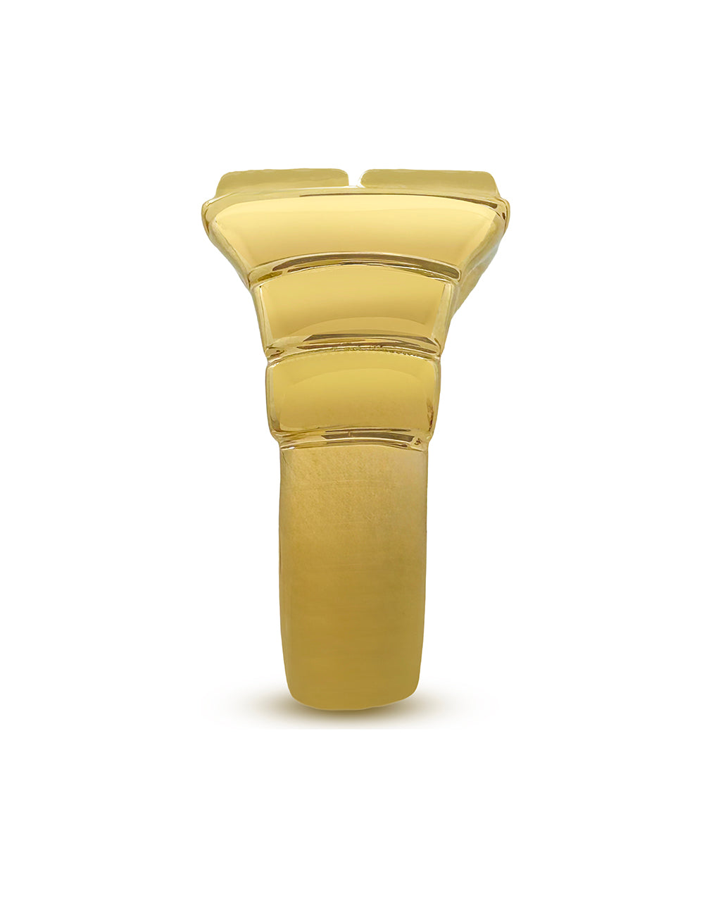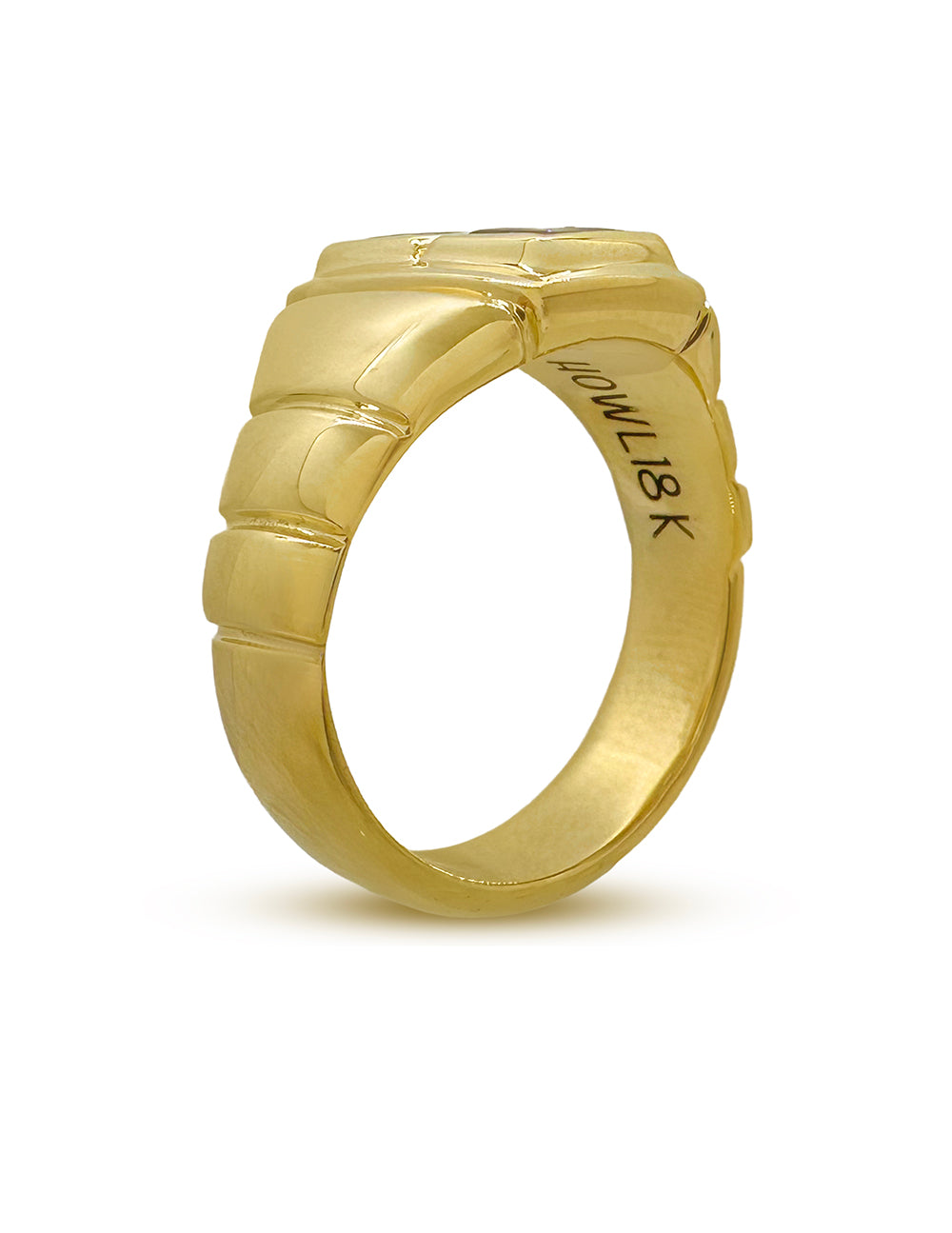 Known for its vivid blue-violet tones, Tanzanite is believed to inspire insight, intuition, and creative flow. The stones are bezel set into a structured 18KT gold band, sculpted with precise ridges that nod to strength and intention.