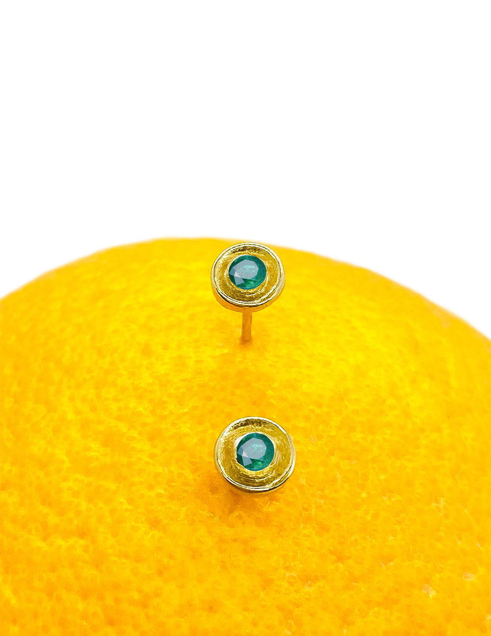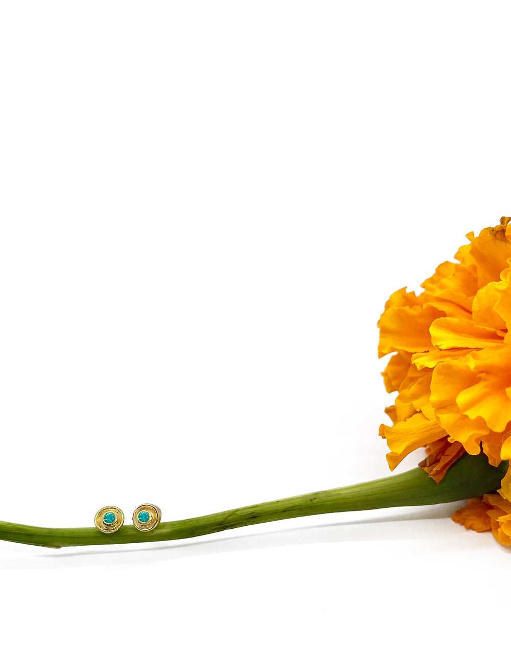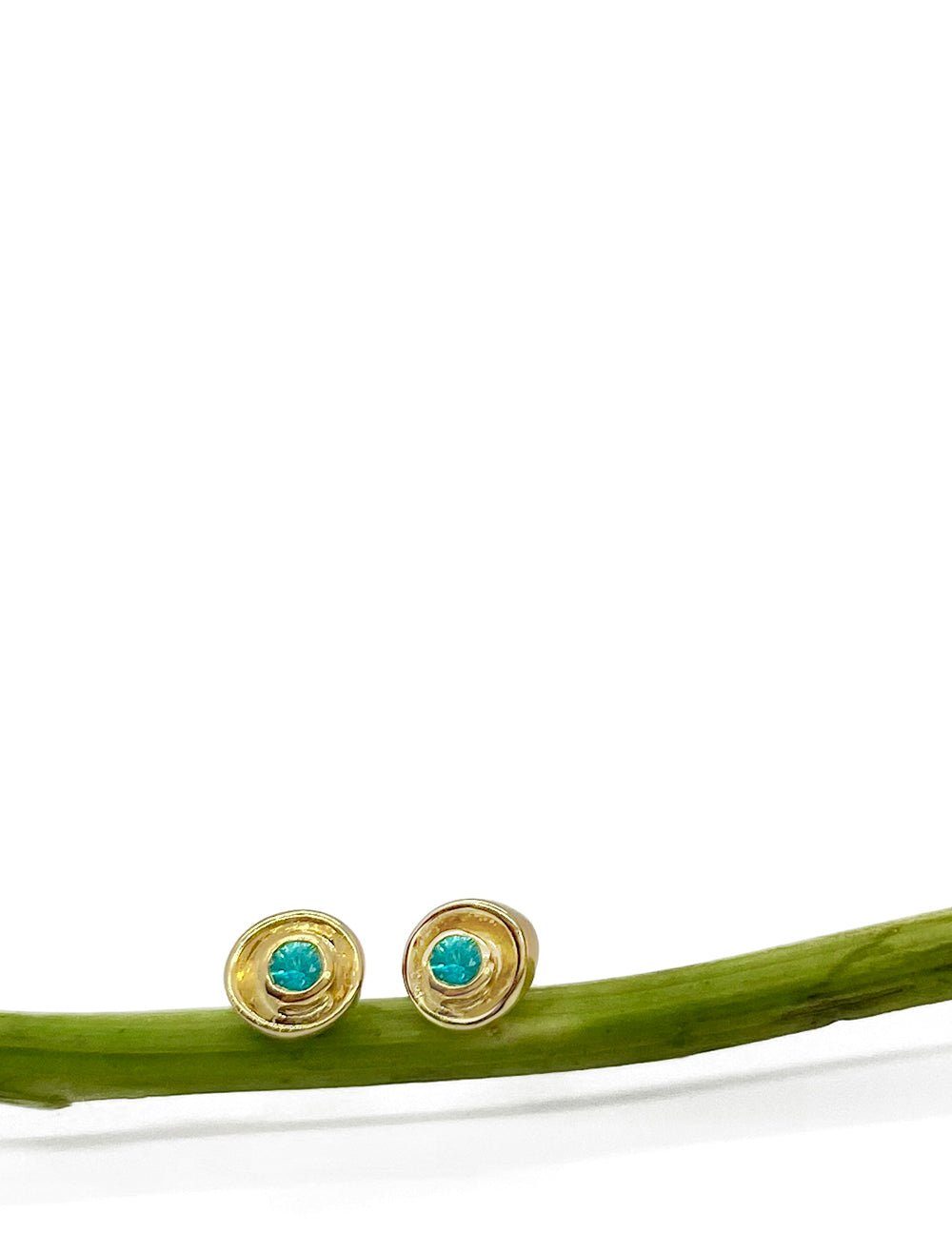 The Paraiba Studs are round in shape and showcase Paraiba Tourmaline stones.