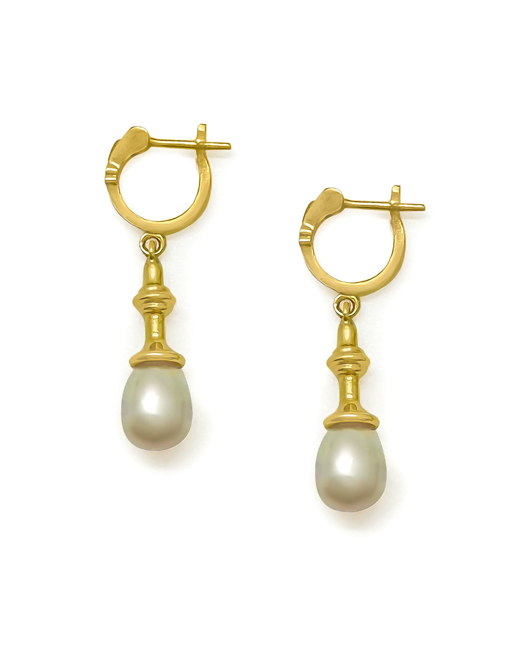 The prominent feature of these beautiful drop earrings are the iridescent saltwater pearls. Pearls represent femininity and peace. When worn, these earrings allow for increased patience and purity of thought.